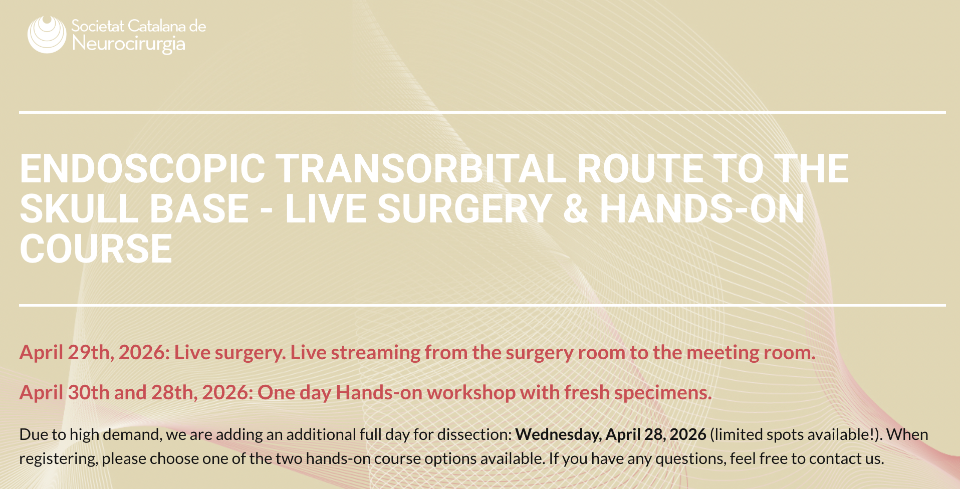 We are pleased to invite you to register for the Endoscopic Transorbital Route to the Skull Base – Live Surgery & Hands-On Course, a focused educational experience combining live surgery, structured lectures, and a full-day hands-on dissection with fresh specimens.
